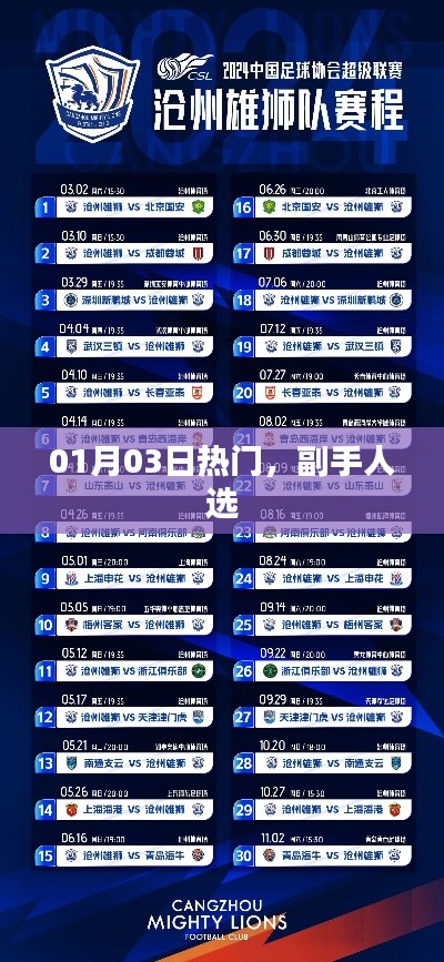 《01月03日热门:副手人选》这一主题引发了广泛关注,选择合适的副手人选对于组织的稳定和发展具有重要意义,作为领导者,需要明确副手的职责和需求,通过严格的选拔过程,挑选出具备专业技能、经验和潜力的候选人,副手职位也带来了挑战和机遇,需要把握好角色定位,发挥自己的作用,为组织的发展做出贡献。